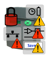 Devices may show adornments which indicates various conditions. It's unlikely you'll see more than one or two adornments at a time; the PL-series drive below illustrates (counter-clockwise from the top left):