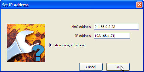 - Manually enter the desired IP address in the data entry box under the New Address heading (as shown above).