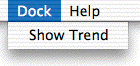 Docks can be viewed in the normal "Parameter Mode" or in "Trend Mode"; switching between the two modes is accomplished via the 'Dock' menu. While in "Parameter Mode", selecting 'Show Trend' will switch the dock into "Trend Mode"; similarly, while in "Trend Mode", selecting 'Show Parameters' will switch the dock into "Parameter Mode".